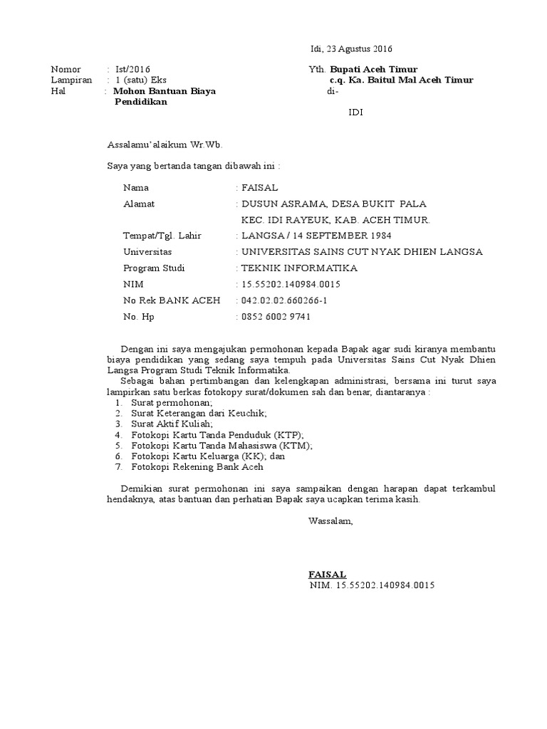 Contoh Surat Rasmi Permohonan Bantuan Baitul Mal Otosection